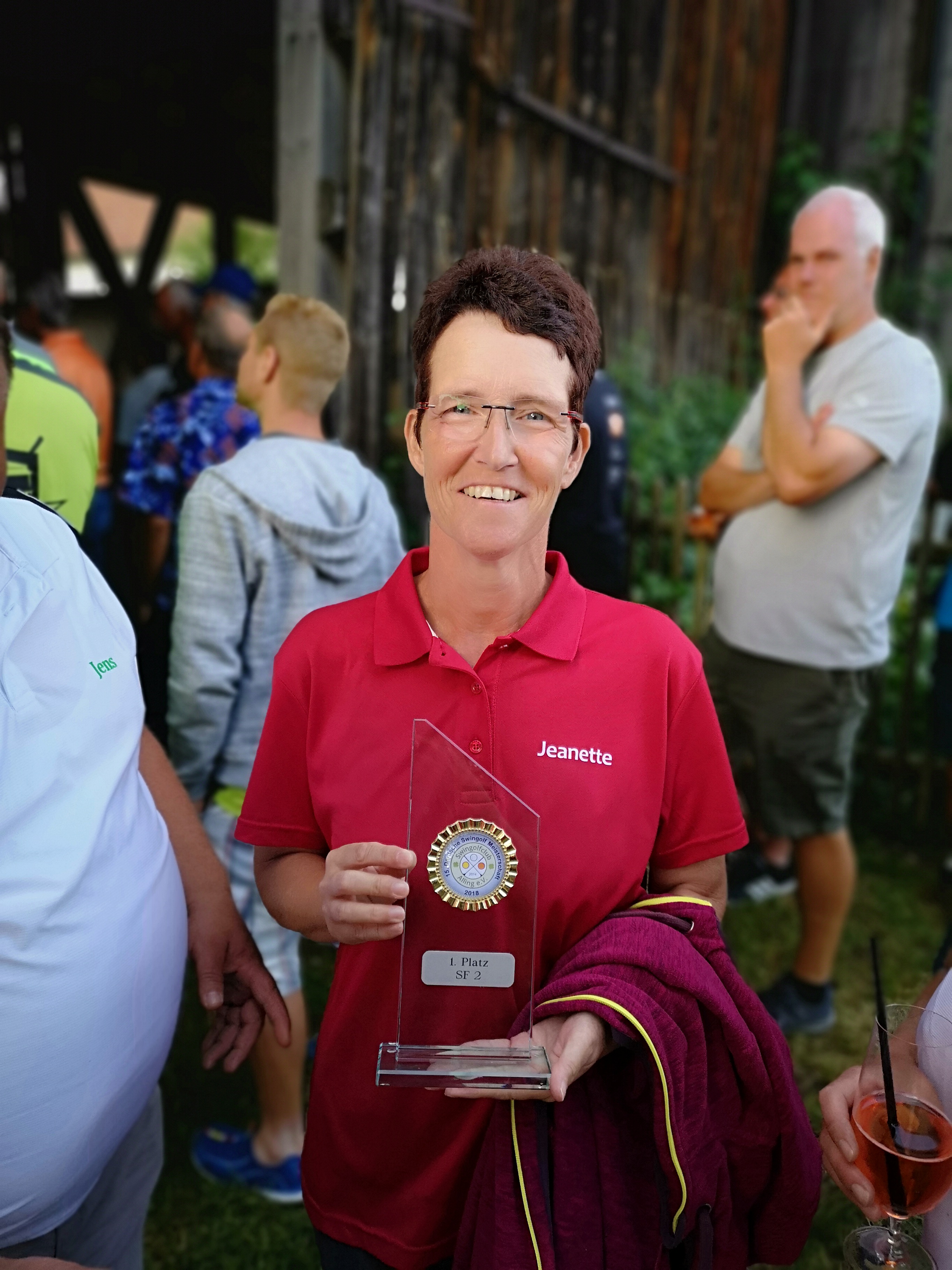 Bei den Damen 2 zauberte Jeanette Buchbauer auf dem Platz. Mit einer grandiosen 69 und damit insgesamt 140 Schlägen setzte sie sich an die Spitze und holte sich den Titel! Olé olé, deutsche Meisterin, olé olé! Ihre Konkurrentinnen konnte ihr nichts entgegensetzen. Margarate Hane schaffte es mit ihrer 73 nur auf 142 Schläge und Mechthild mit ihrer 75 nur auf 146 Schläge.